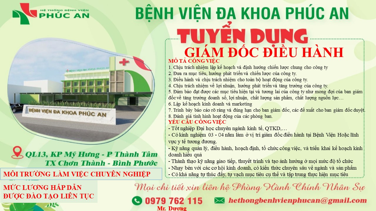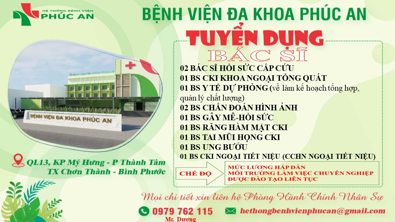 BỆNH VIỆN ĐA KHOA PHÚC AN CẦN TUYỂN GẤP NHỮNG VỊ TRÍ SAU: